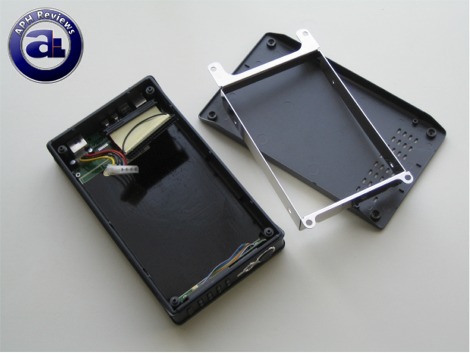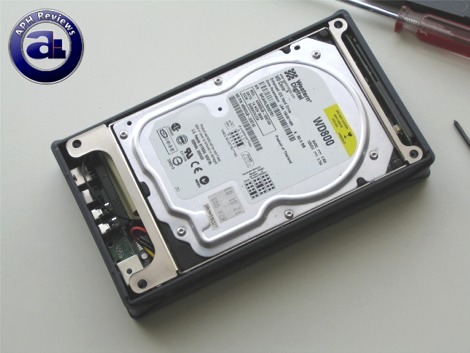 The aluminum frame as described earlier is to be placed around the hard drive you want to install; which creates a perfect fit for any standard 3.5" desktop hard drives. Four screws are attached to the side of the hard drive's standard screw locations. Afterwards, just connect the power and PATA connector to the hard drive and place it into the enclosure. Clean, easy and simple.