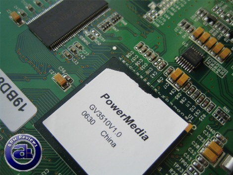 The label over the advertised chip is surprisingly hard to remove -- it simply cracks and chips the second you attempt to remove it as shown above. Regardless, with some effort it will reveal a Sigma Designs EM8511LF chipset as advertised on the box. The chip is clocked at 200MHz with video memory of 16MB.