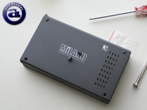 Screws are not pre-attached to the Vizo Milano's cover out of the box -- since you have to install the hard drive into the enclosure anyway. Quickly taking off the aluminum cover reveals the internals of this media enclosure. Both covers are aluminum, but being that, a good portion of the Vizo Milano is unfortunately made out of plastic. Being an insulator rather than a heat conductor, this may negatively impact heat dissipation away from the hard drive to a certain extent.