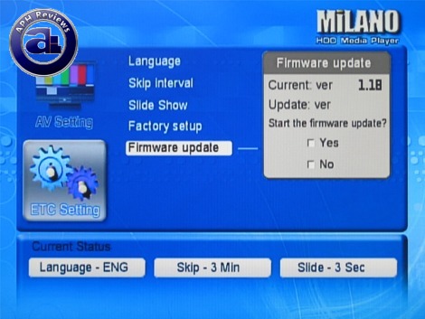 The "ETC Setting" tab lets the user complete other tasks from language settings to firmware update. Most European languages are supported; but not any Asian languages -- which is quite a surprise coming from Vizo, a company located in Taiwan. The Vizo Milano can't even display Chinese characters -- or see any folders/files with Chinese characters in them, for that matter.
