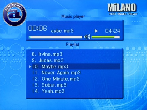 Once you select a music file from a particular folder, a short lag time will be experienced as the Vizo Milano composes a playlist out of all the music in the corresponding folder. The different shades of blue are used again in the Music Player with minimal graphics.