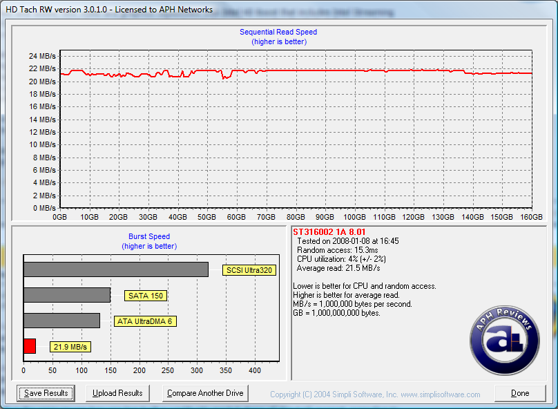 Hard drive used with enclosure: Seagate 7200.7 160GB 8MB PATA