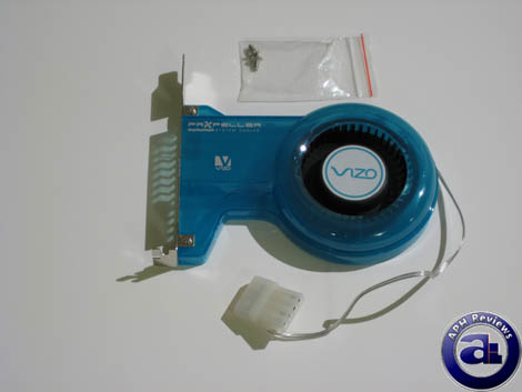 Out of the plastic enclosure, there are only two items included: the Vizo Propeller II, and a small zip-lock bag containing two screws. I was surprised to find that there were no instructions on or inside the box to show you how to install the Vizo Propeller II -- although it should be a fairly straightforward installation, since it's simply a PCI slot fan. Including some sort of short installation sheet probably won't hurt though.