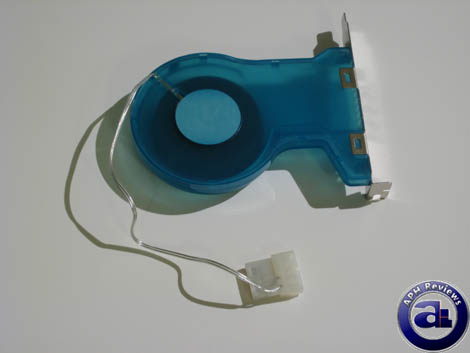 The blue enclosure is a hard plastic that doesn't feel cheap at all, as mentioned earlier; with the plastic on the fan manufacture red out of similar material. The PCI backplate is attached by two screws, allowing for cleaning the interior if dust collects inside. There is no fan rpm adjuster at all, unlike the original Vizo Propeller which had a slider to set the speed of the fans. Overall build quality is pretty nice for a cooler that sets you back about $20 USD.
