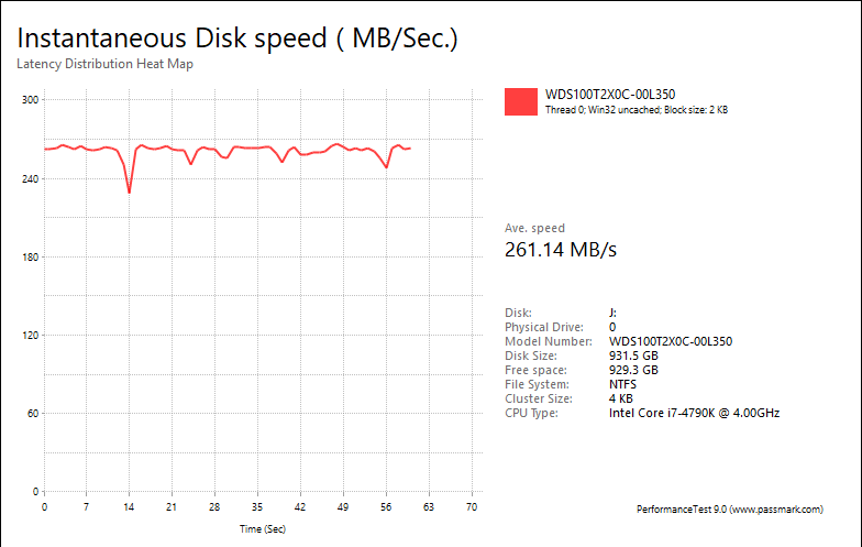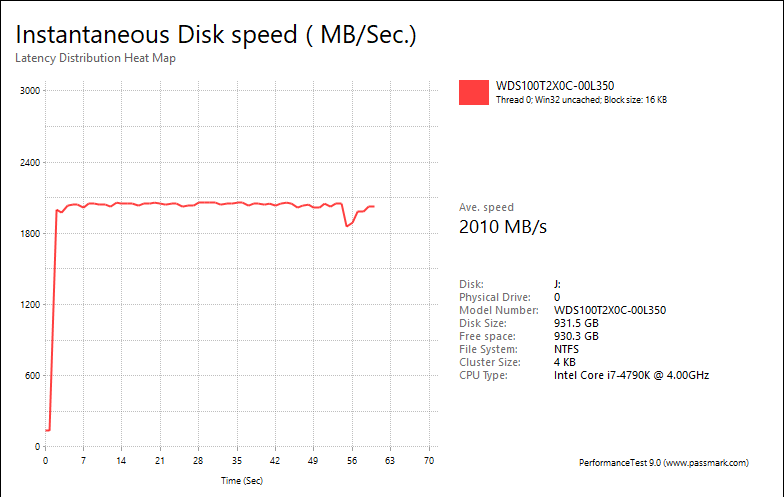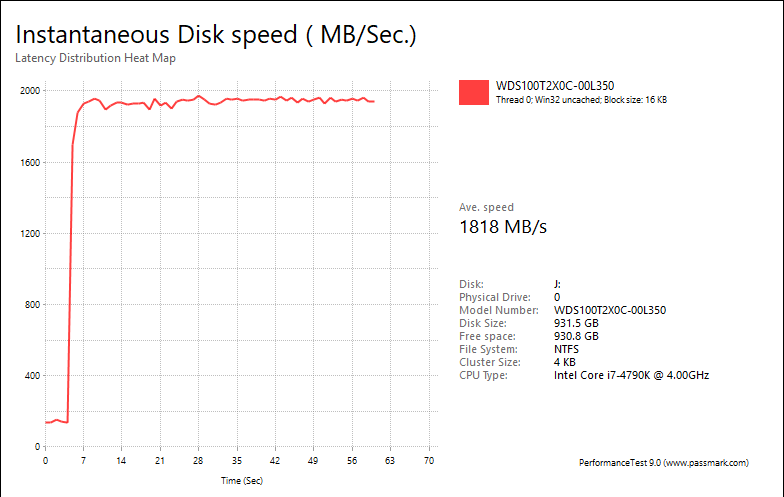 PassMark PerformanceTest 9.0's Advanced Disk Test, unlike HD Tune Pro 4.60, generates some awesome graphs right out of the box. It also provides valuable insight in simulating real world performance applications. To make things clear to you, the first graph simulates a database server, followed by a file server, web server, and workstation. Obviously, PassMark PerformanceTest 9.0 uses highly compressible data in most tests some controllers can really take advantage of. However, it also requires high IOPS capabilities for the best score. In the past, Marvell and Indilinx based drives perform pretty well in this test. One thing clear is the Western Digital Black NVMe SSD 1TB provided reasonably flat graphs, which is excellent if you are looking for consistent performance.