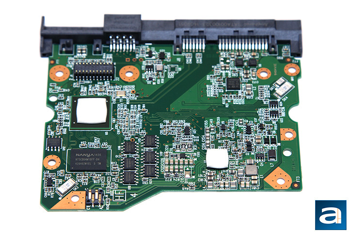 As far as electronic components are concerned, the Western Digital Black WD6001FZWX features a LSI TT07143 dual core drive controller. Pins can be set to force backwards compatibility, in case you have a system that does not correctly negotiate interface speed automatically. The motor is controlled by a WD Pike driver. A large Nanya NT5CB64M16FP-DH 128MB DDR3-1600 IC acts as the cache for the drive. The drive firmware is stored on an array of seven Winbond 25Q20BWVIG ICs. Multi-axis shock sensors, which are more commonly found on enterprise class than consumer grade HDDs, also made its way to the WD6001FZWX. What it does is it actively measures subtle shock events, and with dynamic fly height technology, it automatically compensates head positioning to ensure each I/O operation will not induce excessive physical wear on the disk components. Western Digital Black models 2TB or higher also features StableTrac, which stabilizes drive platters by securing the motor shaft to reduce vibration caused by the system for increased reliability.