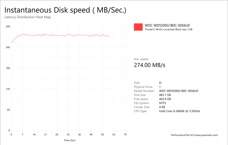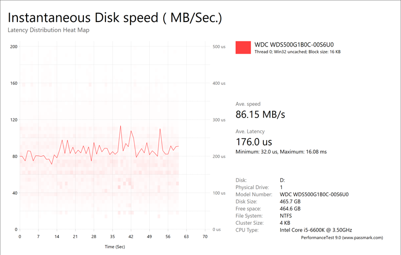 This Advanced Disk Test, which is part of PerformanceTest, measures the data transfer speed when reading or writing data to one or more disks. The speed that data can be transferred between memory and a hard disk drive is one of a system's most important performance aspects. There are quite a few factors which have a bearing on this speed and the Advanced Disk Drive Test allows the user to vary most of these factors and compare the results.