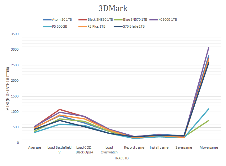 3DMark is the continuously updated version of the popular gaming benchmark from UL. We used 3DMark's Storage Benchmark to test the performance of the drive. According to UL, the Storage Benchmark uses traces recorded from popular games and gaming-related activities to measure real-world gaming performance. The following traces were used and defined as follows: