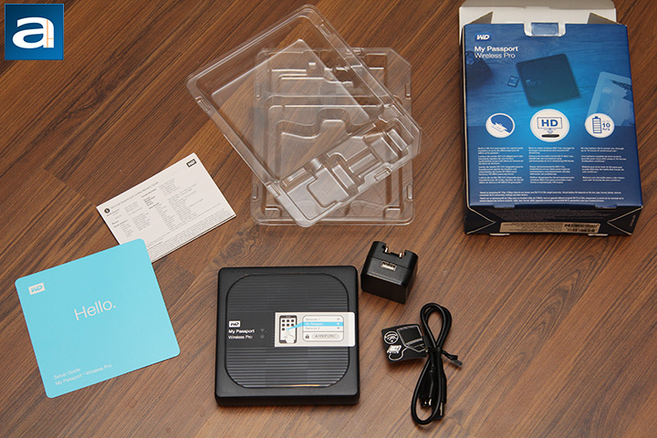 Out of the box, there are not a whole lot of things included. A clear plastic shell inside the cardboard box holds the Western Digital My Passport Wireless Pro 2TB itself, USB 3.0 cable, USB to wall plug adapter, quick setup card, and a warranty information poster. This is pretty much everything you need to get started. With that in mind, let us get started on taking a look at the wireless external hard drive as well.
