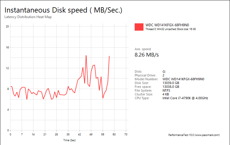 This Advanced Disk Test, which is part of PerformanceTest, measures the data transfer speed when reading or writing data to one or more disks. The speed that data can be transferred between memory and a hard disk drive is one of a system's most important performance aspects. There are quite a few factors which have a bearing on this speed and the Advanced Disk Drive Test allows the user to vary most of these factors and compare the results.