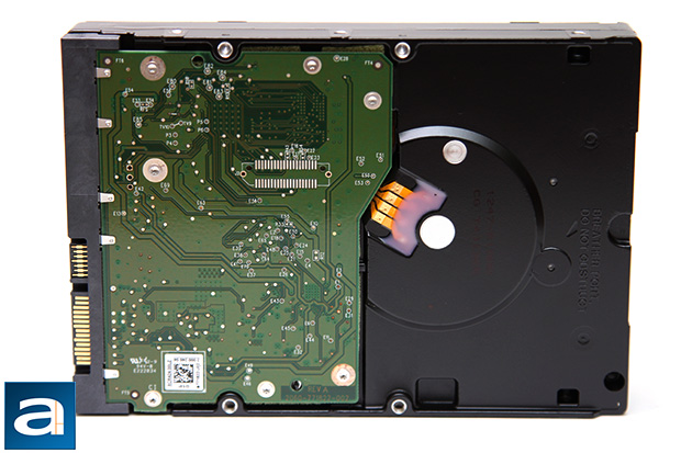Turning the Western Digital Red Pro WD4001FFSX 4TB around, and you will see a green printed circuit board that interfaces between its SATA 6Gb/s interface and the physical mechanical components. Pins can be set to force backwards compatibility, in case you have a system that does not correctly negotiate interface speed automatically. As far as electronic components are concerned, the Western Digital Red Pro features a Marvell 88i9346-NDB2 dual core drive controller. A Samsung K4T51163QJ-BCE7 64MB DDR2-800 IC acts as the cache for the drive. Meanwhile, a Winbond 25Q80BLVIG flash memory module holds the firmware code. To control the motor, a chip labeled WDHC8TD manufactured by STMicroelectronics gets the job done. If you are familiar with Western Digital's enterprise grade drives, it is clear the Red Pro is very similar to their RE series drives. This hardware selection is quite different compared to the non-Pro version of the Western Digital Red series, which are based off the consumer Green series instead.