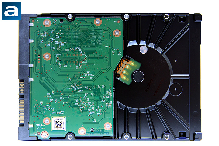 As far as electronic components are concerned, the Western Digital Red Pro WD6001FFWX 6TB features a LSI TT07143 dual core drive controller. Pins can be set to force backwards compatibility, in case you have a system that does not correctly negotiate interface speed automatically. The motor is controlled by a WD Pike driver. A large Samsung K4B1G1646G-BCK0 128MB DDR3-1600 IC acts as the cache for the drive. The drive firmware is stored on an array of seven Winbond 25Q20BWVIG ICs. This is practically identical to the Western Digital Black WD6001FZWX 6TB, which is what the Red Pro is based off of. This hardware selection is quite different compared to the non-Pro version of the Western Digital Red series, which are based off the consumer Green series instead.