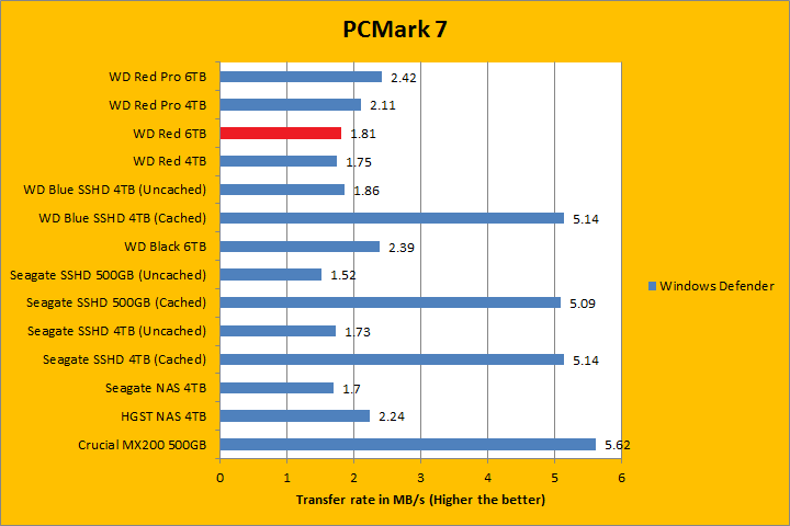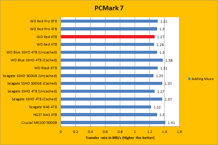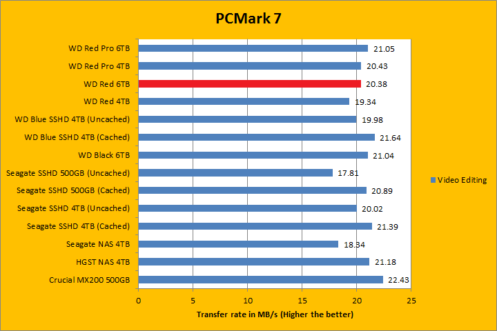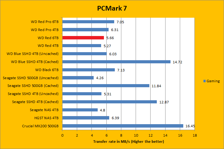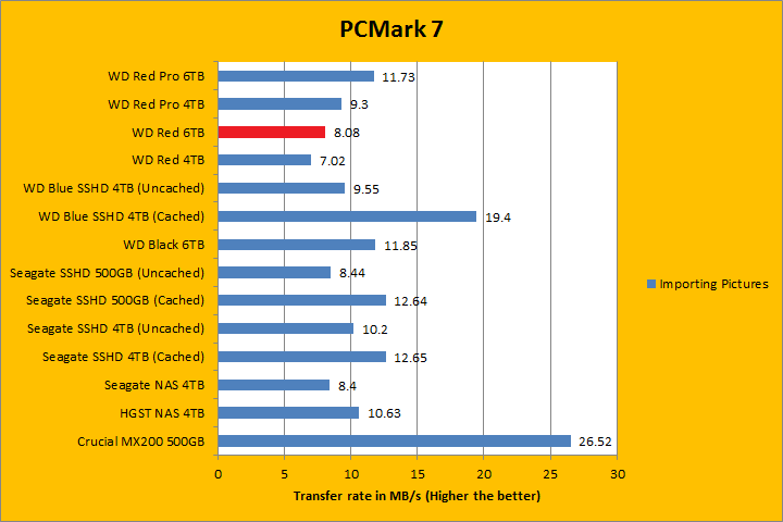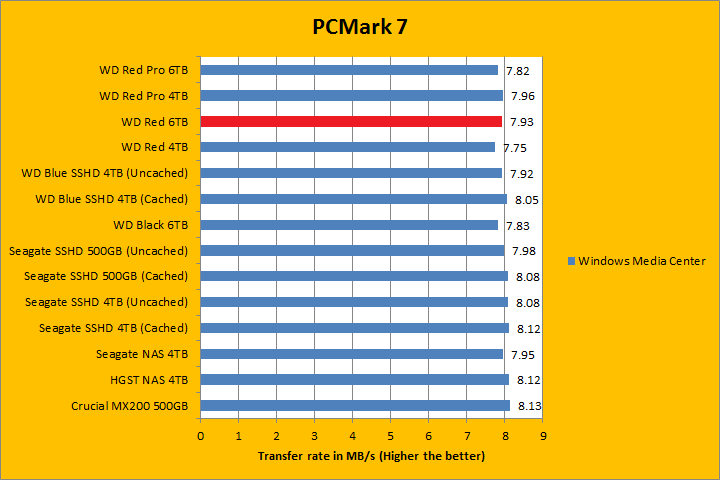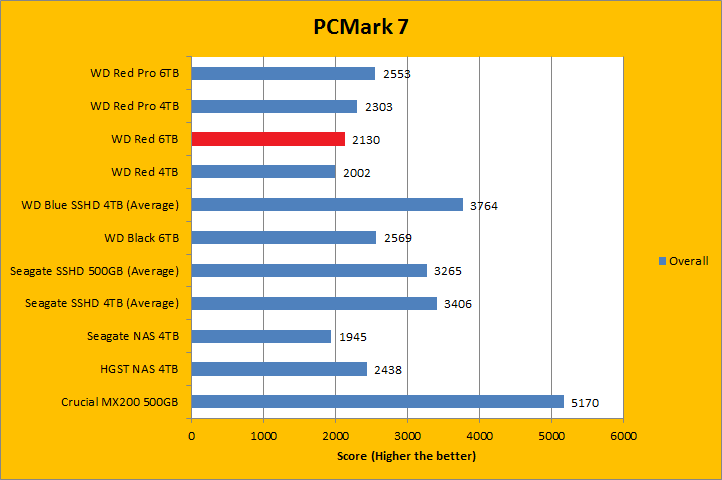 PCMark 7 aims to shed a little more insight into real life performance of your computer hardware by semi-synthetic means -- and all insight is good, right? The great thing about standardized tests is anyone can repeat them and get very similar results, given identical hardware. PCMark 7 is a Windows desktop environment based test, which is exactly what we are after. Also, we can see some caching going on between iterations, which allowed us to see what kind of boost some of the SSHDs in this test brings to the table. Well, I am not going to narrate the stuff above in detail, because we all know graphs are there for a very good reason. As you can see in our results above, the WD60EFRX was slightly faster than the WD40EFRX, but its 5,400RPM spindle speed held it back from beating any of the 7,200RPM models. It still consistently held its own among other hard drives in each simulation segment, which was very commendable overall.