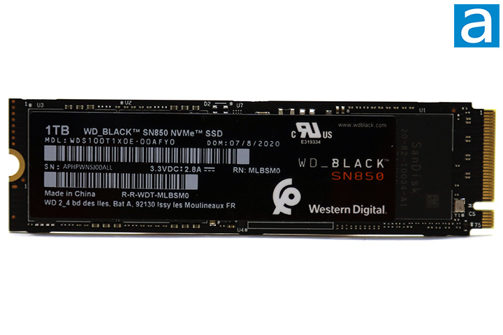 There are two versions of the Western Digital WD_BLACK SN850 NVMe SSD: One with a heatsink and one without. Our particular version is the one without a heatsink. Instead, you will get a sticker, as shown in our photo above. Regardless of the model you get, the Western Digital WD_BLACK SN850 NVMe SSD 1TB will be an M.2 2280 format SSD. If you are not familiar with the M.2 physical standard, M.2 2280 means it the size of the drive is 22mm by 80mm, hence its numerical designation. Its components are located on the black printed circuit board located behind the branding sticker, which we will take a closer look at in just a moment. The Western Digital WD_BLACK SN850 NVMe SSD 1TB works on the NVMe 1.4 logical device interface and plugs into compatible motherboards directly. Electrically, M.2 NVMe interfaces with PCIe 4.0. The Black uses four lanes for up to 8000MB/s bandwidth in each direction. The specified weight is a paltry 7.5g for this SSD.