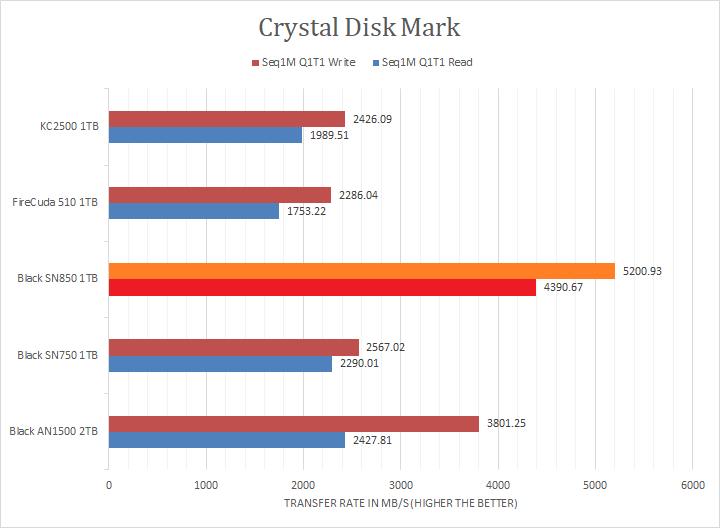 Crystal Disk Mark 8.0 is in the spotlight. Just a bit of background information, higher capacity drives tend to perform a little better in these tests. The ability of a controller and flash memory to deliver high IOPS will provide huge benefits to the score as well. The WD_BLACK SN850 NVMe SSD 1TB is rated at up to 1,000,000 IOPS read and 720,000 IOPS write, which is very impressive. Looking at the read and write results of all four sections, the SN850 1TB absolutely dominated the linear read and write section against the compared PCIe 3.0 NVMe drives, including the AN1500, and matched the advertised figures. It also dominated the Seq1M Q1T1 read and write tests. Surprisingly, it was not that great in the RND4K Q32T1 tests, but nonetheless remained mostly consistent with the rest of the drives. Lastly, in the RND4K Q1T1 segment, the WD_BLACK SN850 scored first in both segments, but the margin was small. I will let you make your own comparisons in our list of SSDs in the graphs above.