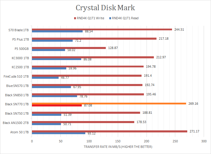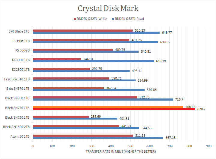 In the RND4K Q32T1 tests, I do not know what is going on here, but it dominated everyone else. I actually retested all the PCIe 4.0-based NVMe drives as a result, because the SN770 results were too good. I think there were some OS-level enhancements that improved some of these results, but even with the new numbers, the SN770 absolutely dominated without explanation. Lastly, in the RND4K Q1T1 segment, we see the exact same pattern, where the SN770 took the lead or absolutely dominated. I will let you make your own comparisons in our list of NVMe SSDs in the graphs above.