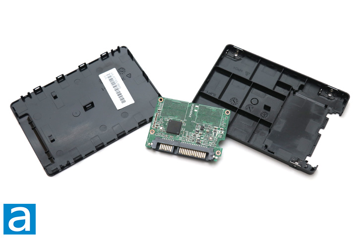 As for our 2.5" SU670 Ultimate 250GB, this is a pretty simple design. The ADATA logo is up top with the model’s name in the middle. The enclosure is made out of a black plastic shell, which is actually the first drive that I have seen made with a plastic enclosure. This makes the whole unit quite light for its size at 47.5g, although this is still heavier than the Atom 30. The drive measures 69.85mm in length, 100.2mm in width, and 7mm in height, which is all standard for a SATA SSD.