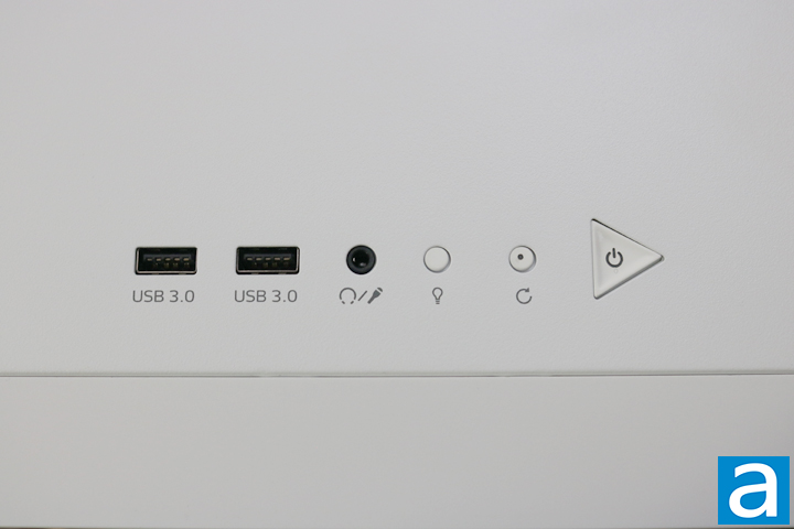 At first, I thought the front I/O for the XPG Invader is a bit limited. There are two USB 3.1 Type-A ports, which is excellent, but they are the only USB ports available on the front. Otherwise, there is a combination microphone and audio 3.5 mm jack, reset switch, LED cycle button, and a power button. I am sure for most users, two USB ports on the front are enough, but I use them frequently and often want to plug in more than two USB devices on the front. Otherwise, a wonderful detail to note is the power LED is white, not red. Many cases use the accent color, in this case red, as the power button LED, which could throw off then entire theme of a case if you chose a different color for all the other RGB LEDs inside. The white power LED button is subtle and does not intrude on whatever other color scheme is chosen for the rest of the case.
