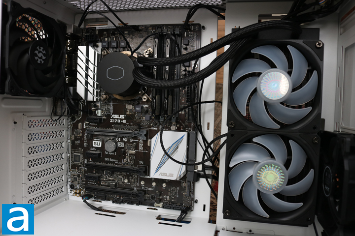 Installation of components in the XPG Invader was an easy process. The manual is clear enough for a beginner to follow along. I started by installing the motherboard and cooler. As you can see, I installed the radiator so the LEDs of the fans will be easy to see. It is not the most efficient cooling setup, but it looks nice, haha. I left the pre-installed front fan to continue to take air in at the front, with one fan at the back as an exhaust. However, since the radiator is in the orientation it is in, it exhausts air as well. In my setup, I probably have more air being pushed out than in. I continued to install the power supply and storage drives, and then connected as many cables as I could before I proceeded to install the graphics card.