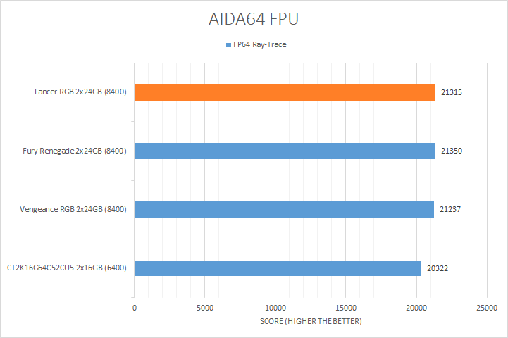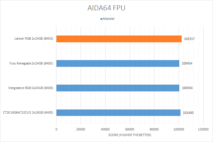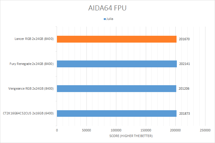 Usually, AIDA64's FPU benchmarks are the least exciting of all when writing a RAM review. This is because the way results are obtained is usually highly dependent on the tested processor, so much to an extent that the outcome is typically irrelevant to the speed or latencies of the installed memory modules.
