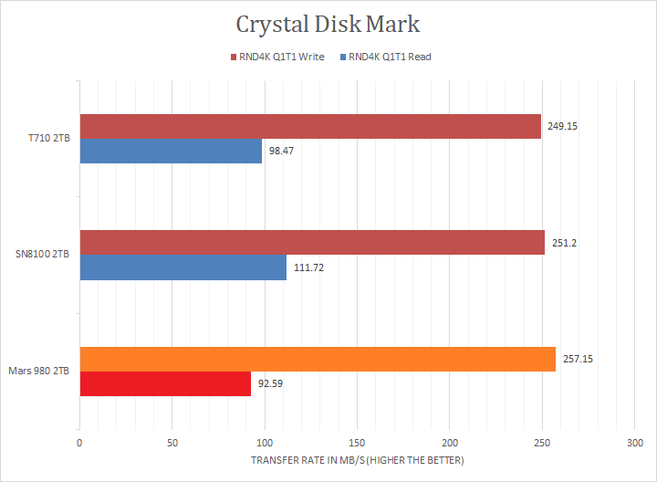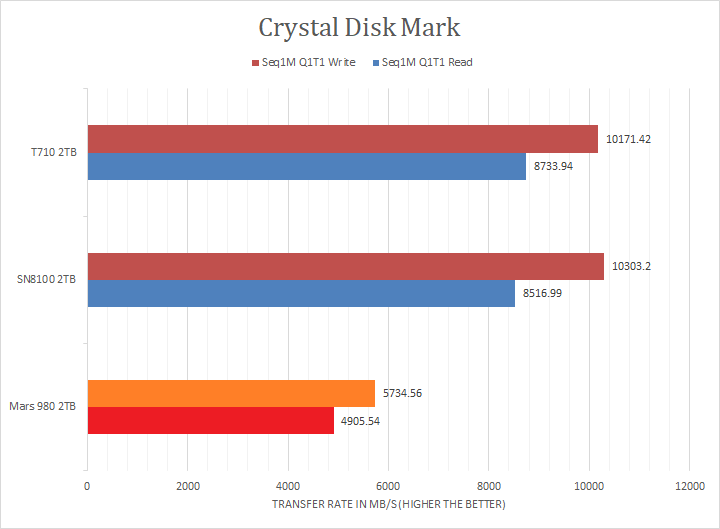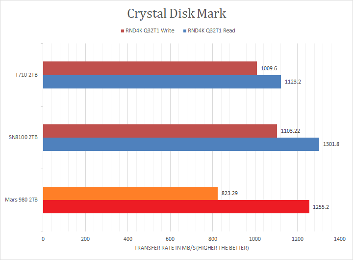 XPG claims the Mars 980 Blade's maximum read and maximum write are pinned at 14,000MB/s and 13,000MB/s, respectively. Looking at the linear read and write results, the tested numbers were reasonably close compared to the advertised numbers. The PCIe 5.0 NVMe-based drivers were all close to each other, but the Sandisk and Crucial drives had a slight edge when it came to write. The XPG drive seemed to have issues catching up in the Seq1M Q1T1 sections, coming in at almost half the score. In the RND4K benchmarks, the the Mars 980 Blade was strong other than Q32T1 write. Overall, the XPG Mars 980 Blade 2TB was a mostly strong, but somewhat inconsistent, performer in the context of other flagship PCIe 5.0-based NVMe SSDs. I will let you make your own comparisons on our list of NVMe SSDs in the graphs above.