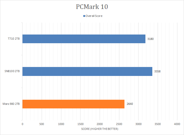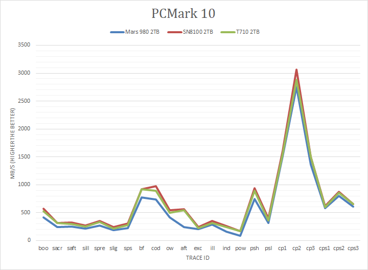 PCMark 10 is a popular full system benchmark from UL. We used PCMark 10's Full System Drive Benchmark to test the performance of the XPG Mars 980 Blade 2TB. According to UL, the Full System Drive Benchmark uses a wide-ranging set of real-world traces from popular applications and common tasks to fully test the performance of the fastest modern drives. The following traces were used and defined as follows: