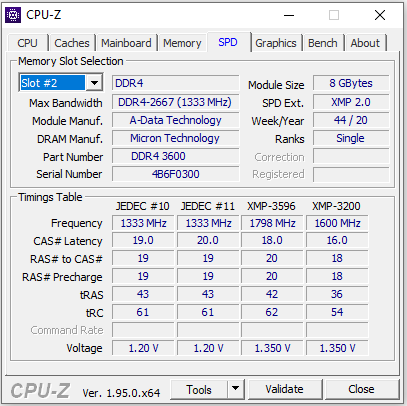 The photo above is a screenshot of the SPD tab in CPU-Z with XPG's Spectrix D50 DDR4-3600 2x8GB installed. The SPD timings table in CPU-Z reads standard JEDEC specifications programmed into the memory along with XMP data for running the RAM at various speeds. My MSI MAG B550 Tomahawk motherboard used for testing was perfectly capable of getting all the information about the Spectrix D50 RAM. It should be noted that you may need to manually set the XMP profile in the BIOS depending on what motherboard you are using. The XPG Spectrix D50 DDR4-3600 2x8GB can be found for as low as $115 at the time of this review, but regularly retails at $140.