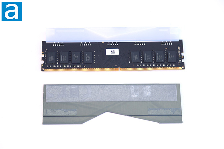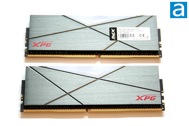 From the photo above, we can also see the specific design of the heatspreaders. The heatspreaders are perfect mirror images of each other when looked at directly. The aluminum pieces do not hold a lot of heat and thus, the heat energy is quickly dissipated into the surrounding environment. Do not let the thin look of the aluminum fool you -- they feel very firm and should not easily bend. With the RGB LED lighting being one of the primary selling points of the XPG Spectrix D50 DDR4-3600 2x8GB, there is really no reason you would need to remove the heatspreaders. If the scenario arises that these RAM modules will not clear the heatsink on your CPU cooler, which is basically non-existent nowadays, it would be better to just find another kit to use.