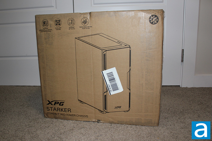 The review unit of the XPG Starker arrived from the ADATA Technology's offices in Brea, California. The package was delivered using FedEx's International Ground service. The box arrived in good condition with just a slightly squashed corner and a small dent on the top of the box. The back of the box had some dirt on it. Similar to other cases we have reviewed, the shipping box is the same as the retail box. XPG uses a regular brown corrugated cardboard box likewise to many other case manufacturers. On the front of the box, there is an illustration of the general case design. The image does not make it evident this case does have a tempered glass side panel, which we will be able to look at later on in this review. We have XPG's logo at the bottom left, accompanied by the product name "Starker". On the top left, we have some additional features this case provides. On the back of the box is an illustration of the case showing all of the components detached.