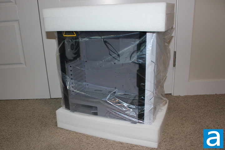 Out of the box, the Starker comes packed between two thick pieces of white foam and wrapped inside a clear plastic bag. The clear plastic bag is present to help protect the surface from any scratches during transportation and unpacking. There are two large Styrofoam pieces sandwiching the case to keep the case in place and minimize any movement within the box. The thickness of the Styrofoam was sufficient as I had no worries about any damages. Given the side of the case is tempered glass, it is important for the Styrofoam to be thick, as glass could shatter without proper protection. In my opinion, the case was well protected. The foam was snug against all eight corners of the case and I feel that if the shipping box was to be dropped, the contents will remain safe. Enclosed inside the shipping box, we find a small paper manual for the case as well.