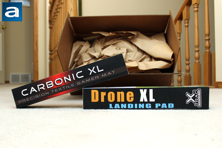 Today's review unit of the XTracGear Carbonic XL arrived via USPS and Canada Post, in excellent condition. This parcel was driven all the way from XTracGear's offices down in Salt Lake City, Utah. Unlike the XTracGear Carbonic XXL they sent us last time, this mousing surface did not arrive in a long rectangular tube-like box, but rather in a larger box. Along with the Carbonic XL we are reviewing today, XTracGear sent us their Drone XL, which I will be looking at in the coming weeks. Otherwise, the corrugated cardboard box has zero dents or scratches to worry about, so I pulled out my scissors, and got to work.