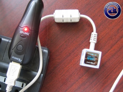 Sorry for the washed out photo, I had to use my camera's flash because it's very dark inside my garage. Anyway, I listen to my digital audio player (DAP) quite a bit in the car. With ZIP-LINQ's USB to DC 12v car adapter, charging my DAP while listening or simply charging it during driving trip is very convenient. This is especially handy when I use Belkin's Tunecast II FM Transmitter since using the FM transmitter also means having my DAP at a high volume; the higher the volume, the faster the juice in my battery goes away.