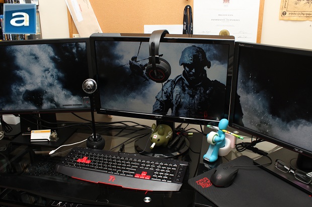 One thing I truly love about the headset is the design. While this is purely opinion, I like the rubberized matte-finished surface that is on the opposite side of the ear cups. This matte finish circles around a glossy plastic which shows the CM Storm logo. The matte finish has always been a big plus to me, especially since it usually means fingerprints will not be seen. Since it probably will be the area that is most touched by any user when putting it on and taking it off, the matte finish is a good choice. On the left side of the ear cups is the fixed microphone with “Ceres 400” shown on the side. Putting the headset on made me feel like a true gamer, especially with the CM Storm QuickFire Pro as aforementioned in front of me. On both sides is a red plastic ring separating the matte finish from the gloss. When I see the red ring, the first thing that comes to mind are Canon L-series lenses, and while these are far from comparison and probably not even intended, it is a nice look, and adds color to an otherwise ordinary headset.