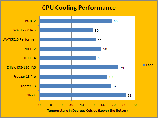 Our temperatures shown above were obtained using data collected by the CPU's integrated digital thermal sensor for maximum accuracy. After idling the computer for an adequate amount of time as aforementioned, we made sure these idle results can actually be obtained after a full load cycle. From our results graph above, the Cooler Master TPC 812 posted generally acceptable results; cooling the CPU to 36 degrees Celsius in this state. This is certainly not the best result we have seen, but it is far from being terrible. Granted, having a processor in idle conditions does not put a lot of stress on the cooler, nor does it exploit the maximum potential of the system. To see where it all matters, we fired up the Core i7 with eight worker threads in Prime95 to see if the coolers live up to its promises. Results are next.