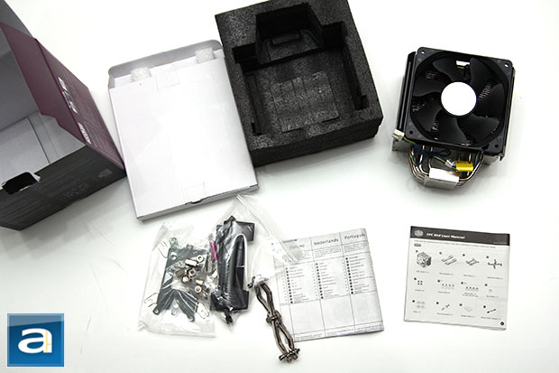 Everything is packaged neatly inside the Cooler Master TPC 812's retail box. A foam bracket holds the heatsink itself in place, so it won't slide around during transport. The included cooling fan is already pre-installed for you out of the box, but you will need to detach it during installation. Thankfully, it is a very simple procedure; we will go over the details in just a moment. Two installation manuals -- one in English and one in multi-language -- is provided for people living in different countries. Inside two resealable plastic bags are the installation accessories. At first, I was going to trash Cooler Master for not separating the Intel and AMD bits, but a quick glance at the user manual makes it quite clear to us that the accessories are designed for universal fit. The company also includes a tube of thermal paste and a resistor cable for capping your fan speed.