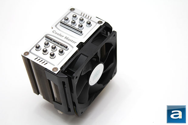 Cooler Master includes one 120mm fan out of the box, and it is already pre-installed for you already. The fan runs from 600rpm to 2400rpm; a 1600rpm cap will be enforced with the low noise adapter. This sleeve bearing PWM fan is rated at 19 to 40dBA and 19.17 to 86.15 CFM, with a life expectancy of 40,000 hours. My only complaint is Cooler Master does not include any 4-pin Y-split connector out of the box, should you add an optional second fan, to connect both of them to the same motherboard CPU fan header.