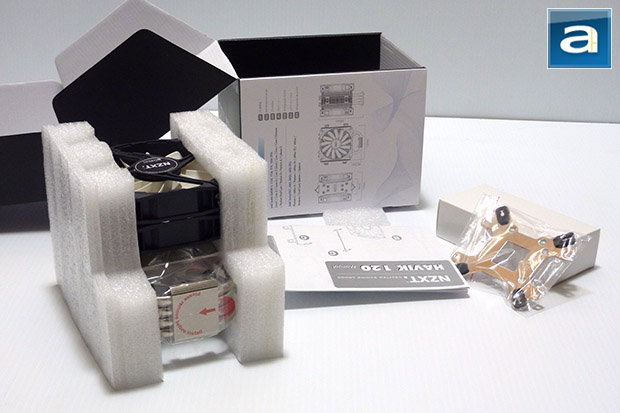CPU coolers from NZXT are typically not designed for silent enthusiasts or extreme overclockers. On the other hand, if the HAVIK 120 is similar to the HAVIK 140, it is going to provide above average performance at great value. Although I think I already have a good idea of what I will find when I open up this box, let us take a look and see if we have any surprises. The NZXT HAVIK 120's packaging has a unique Styrofoam configuration, which seems to eliminate a significant amount of material, and at the same time, retains the necessary padding for the contents. I am already impressed; it looks like someone spent some time looking at how to cut costs down on packing material. The two fans are stacked up with the heatsink sandwiched between two pieces of Styrofoam. The installation manual for the HAVIK 120 follows the same style as the 140, except it is larger, because of the LGA 2011 socket installation instructions. It still retains the simple LEGO or K'NEX like style for instructions, which I absolutely love, because it reminds me of my childhood. The backplate comes in its typical plastic bag separate from the other parts, which still left me confused as to why it is so special and needs to be isolated. Finally, you can see the parts box which contains all the necessary pieces for mounting and attaching the fans. Absolutely nothing surprising here, and everything you could want is provided, except for some resistors to cut down on noise by reducing the power to the fans. However, this CPU cooler wasn't designed with primarily silence in mind, so it would not be fair to consider this a flaw in my opinion. Plus, most motherboards are more than capable of adjusting your CPU fan speed anyway.