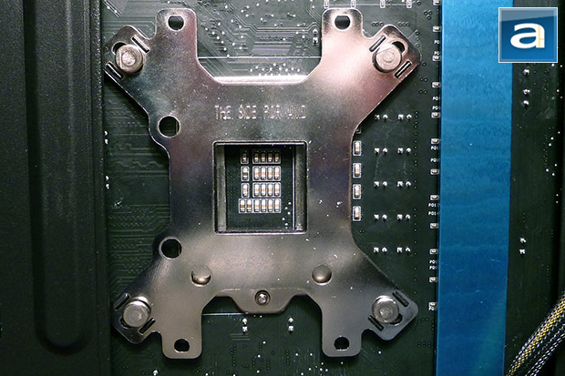 As always, the first step to installing a CPU cooler is to remove the old one, and cleaning off the CPU's integrated heatspreader. The HAVIK 120 follows the same brilliant screws and mounting bracket design as the HAVIK 140. While I do not like how it requires a significant amount of assembly, the parts are designed to fit together with a reasonable amount of friction to hold them together as you put in the pieces. Lining up the backplate on the rear side is relatively trivial, as the socket holes are marked directly on the plate to eliminate any confusion during installation. While I still think it is odd when you install it for an Intel socket you get the words "This side for AMD" facing towards you, all this boils down to the question -- is it upside down and you are right side up, or is it right side up and your upside down? Either way, NZXT is pretty consistent about this design, and this is beneficial for anyone who sticks with the company for CPU coolers. Each of the four screws are designed to have threads on the lower half with the upper half be smooth but slightly wider to give it a secure hold using friction. This means the backplate will hold it in place just by using the screws alone as the friction between the screws and the plate prevents them from sliding out while you are installing the cooler -- absolutely brilliant.