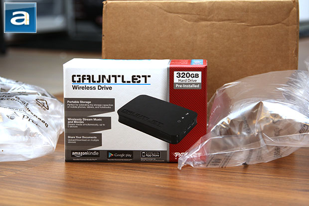Patriot is a company that appeals to computer geeks like you and me -- no question about that. As you can see in our photo above, they make no effort to hide the Gauntlet 320's nerdy origins with its product packaging. Created with a predominantly white and red color scheme with black and white text, it definitely carries a look that will fit right in at your local computer store. Don't get me wrong, this is not a bad thing. That said, the actual text content is not quite as nerdy as you would imagine; the casual enthusiast will have no problem understanding what the Gauntlet 320 is all about. Actually, one interesting thing to point out is the name 'Gauntlet 320' never really appears on the packaging, although this is the official designation according to Patriot's website. All it says is this is a Gauntlet wireless drive with a 320GB HDD pre-installed.