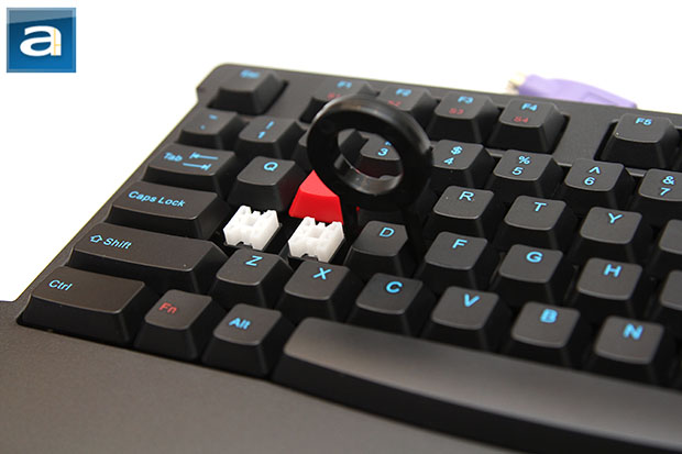 As you can see in our photo above, the left Windows key is replaced by a Function key. How many times have you tried to duck in your favorite FPS while engaging an enemy, only to be killed instantly, because you missed the "Ctrl" key and your game was minimized? Yeah, it is a legitimate issue. However, I would have much preferred a mode switcher instead -- the left Windows key is something I use quite a bit when I am not gaming. Sure, we still have the right Windows key, but this is just not the same thing to me. That said, the Fn button is to be used in conjunction with the F1 to F4 keys, which changes to S1 to S4 upon the Function key's activation. This steps the repeat rate from 1x to 2x, 4x, or 8x. Unfortunately, this cannot be done via USB, so keep the included PS/2 adapter handy if this is important to you.