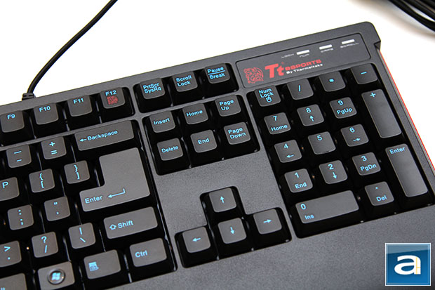Fundamentally, everything is quite standard here in terms of layout. Even the arrangement of production keys is in classical formation -- users who are used to the Logitech arrangement will need to switch back. However, I do have one complaint. Because the Tt eSPORTS Knucker has a full sized Enter key, the "\" button is moved to the left side of the right "Shift" key; reducing the size of the latter. I am more used to having a full width Shift on the right, and a half height Enter -- I would have much preferred that instead. It is beyond me why Thermaltake changed it on the Knucker, since some other Thermaltake keyboards come in the other layout. I am sure most people would prefer that as well.