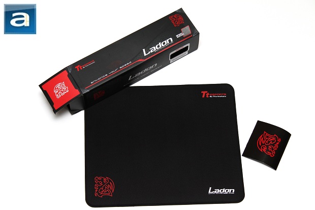 Our review unit of the Tt eSPORTS Ladon came in a medium-sized, corrugated cardboard box from our good neighbors down south via UPS Standard to our Calgary, Alberta, Canada headquarters. Whatever it has been through, it seemed like a nice cruise while making its way here, as there was very little bumps and bruises on the box. It didn't make very much sense to package such a small product in a medium-sized box, but Thermaltake has another product included, so we won't have to worry about wasted space. Without further adieu, I quickly opened the box, and got down on reviewing the Ladon mousepad.